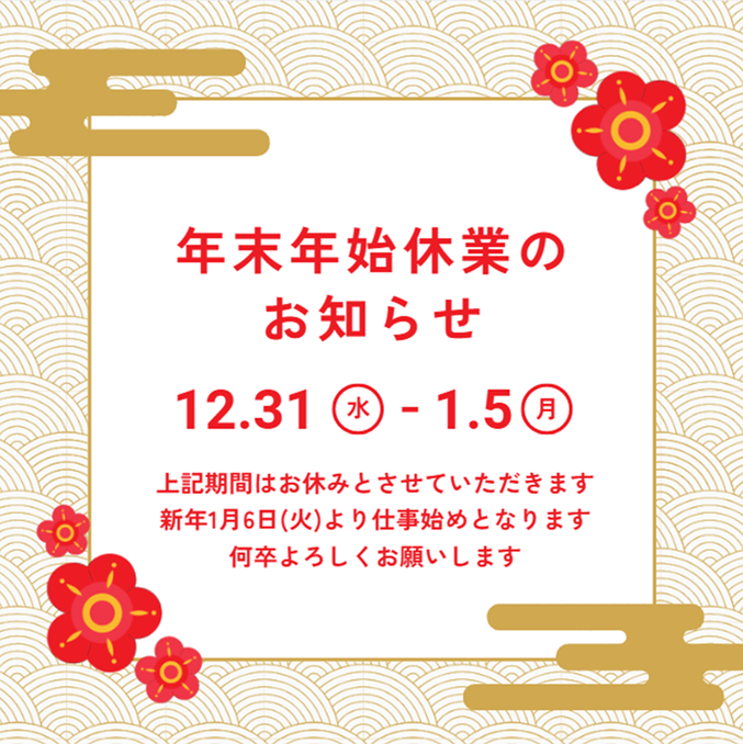 【年末年始業務休業日】 令和7年12月31日(水)~令和8年1月5日(月)