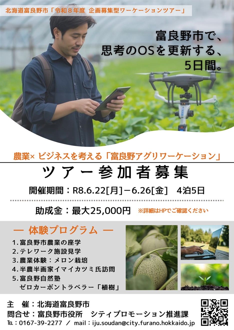 北海道富良野市では、「半農半Xの働き方」「アグリビジネス」「アグリテック」「フードビジネス」を考えるワーケーションツアー「富良野アグリワーケーション」を開催いたします。